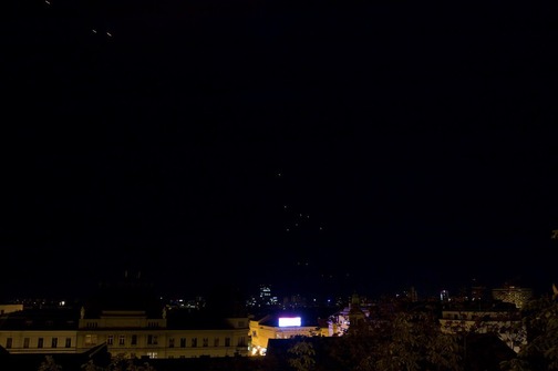 Više zabrinutih građana Zagreba zvalo je u utorak navečer Centar 112 kojem su prijavili da se na nebu iznad grada formirala skupina svjetala koje se ujednačeno kreću nebom. Viđali su ih od oko 20 do 23.30 sati od Glavnog kolodvora, Zavrtnice do Kvaternikova trga.
