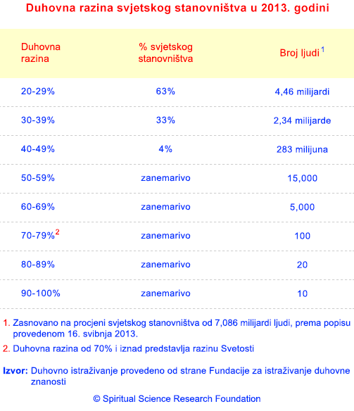 Koristili smo metodu duhovnog istraživanja za analizu svjetskog stanovništva prema duhovnoj razini u 2013. godini na bazi 7,1 milijarde ljudi