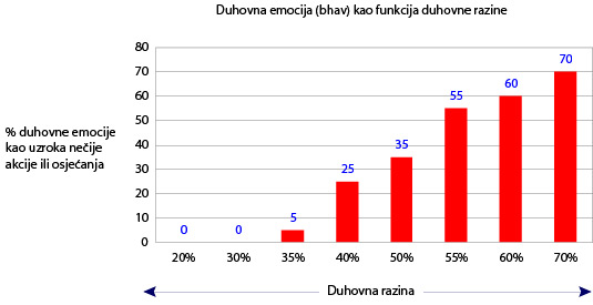 Osoba na duhovnoj razini od 20% može biti puna sebe i ponosna na svoje intelektualne sposobnosti kada uspješno obavi neki veliki i značajan posao. Osoba na duhovnoj razini od 50% u sličnim okolnostima bit će preplavljena duhovnom emocijom i prepuna zahvalnosti Bogu na Njegovoj milosti što ju je blagoslovio takvim uspjehom.